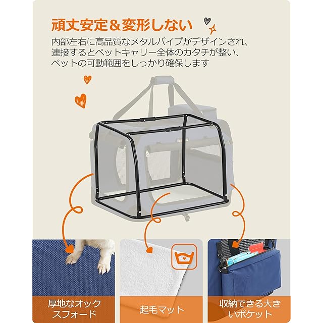 FEANDREA キャリーバッグ 中型犬 大型猫 ペットキャリー 省スペース 頑丈耐久 変形しない 室内用可 NPDC60Z