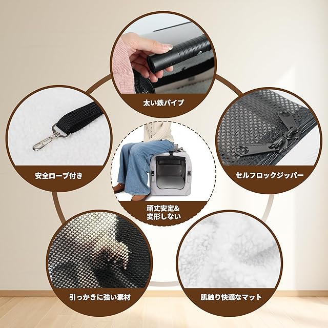 【しっかりした作り】犬用クレートは600Dオックスフォード布を採用しています。クレートの上部・下部・側面はオックスフォード生地で、柔軟性があり、耐久性や耐摩耗性に非常優れています。5つ通気性あるのメッシュは耐久性に優れ、引っ掻きにも強い!活発な性格の猫や犬も一緒にお出かけする際に、メッシュが耐久性を保ち、引っ掻かれても安心です。丈夫な素材で作られているため、ペットが元気に動き回っても問題なく、安全に楽しいお出かけができます。布カバーは完全に取り外し可能で、洗濯機で洗えます、 ペットの健康を守ることができます。