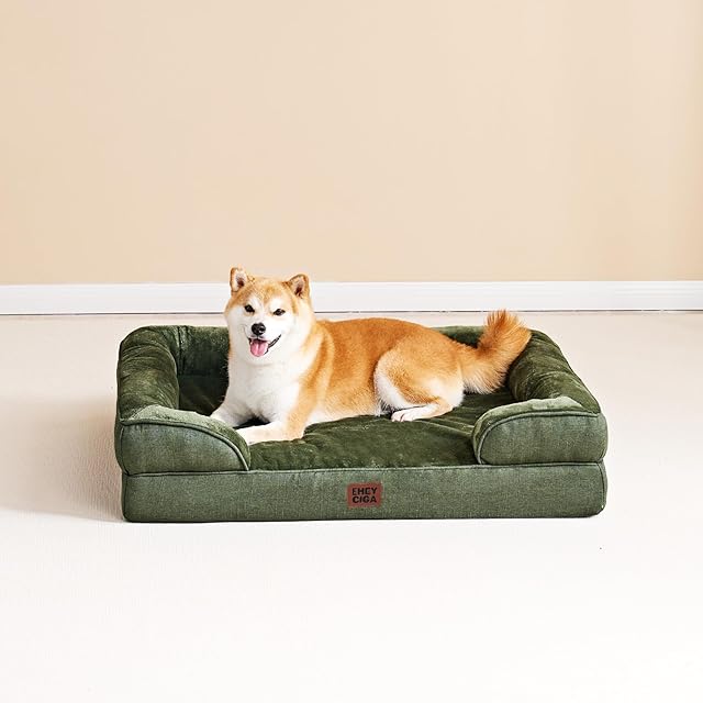 EHEYCIGA 犬 ベッド 冬 ペットベッド 防水 猫 ベッド 洗える 犬用 クッション 高反発 取り外せるカバー 滑り止め オールシーズン 小型犬 中型犬(61x45x15cm,グリーン)