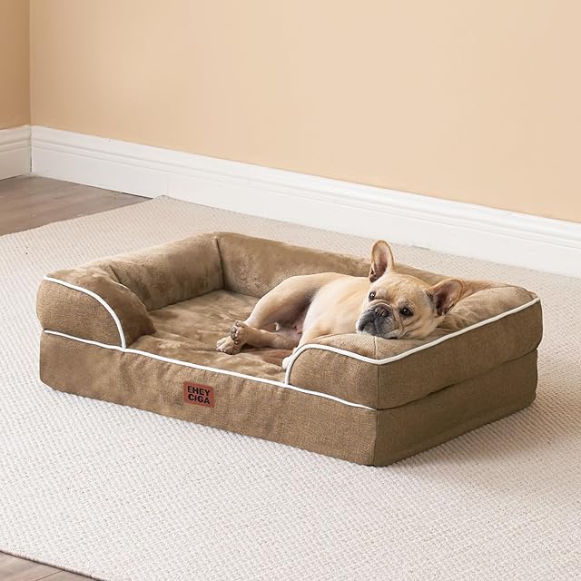 EHEYCIGA 犬 ベッド 冬 ペットベッド 防水 猫 ベッド 洗える 犬用 クッション 高反発 取り外せるカバー 滑り止め オールシーズン 中型犬 大型犬(89x56x16.5cm,カーキ)