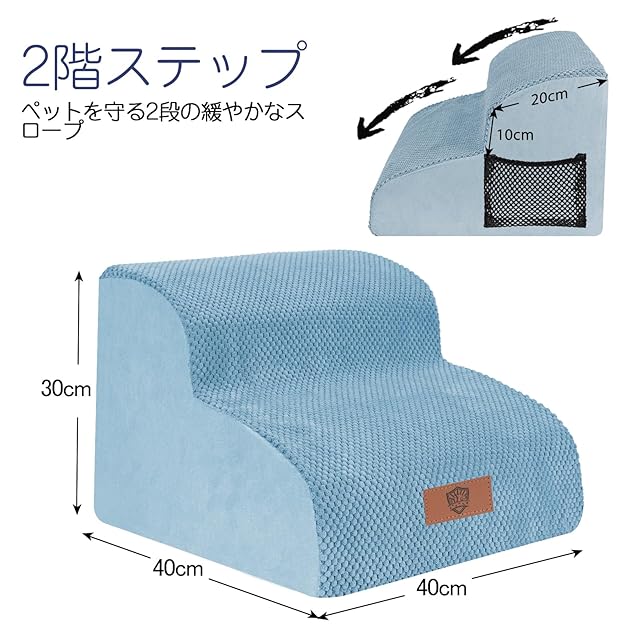 商品名:Masthome 犬 階段 犬スロープ階段 ドッグステップ 犬用ステップ 2段 7色 高さ30cm ペット用 ステップ 階段 滑り止め 安定がいい 取り外し可能式 洗えるカバー 頑丈で丈夫 耐久 怪我防止 介護用ペットステップ 小型犬 室内犬 高齢犬 ブラウン グレー ブラック ホワイト ブルー マスタードイエロー アイスランドブルー