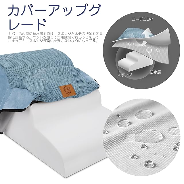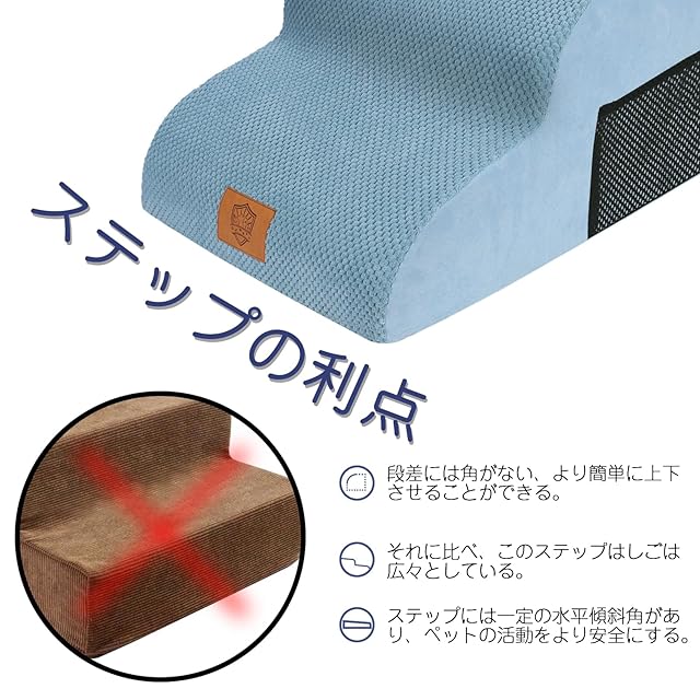 安定性が優れる:ステップの底に滑り止めが付いていて、ステップが飛び乗ってもずれないので安全です。カバーはコーデュロイの材質で、柔らかくて滑りにくい、爪も引っ掛かないので、ペットがステップで滑ったり転んだりはしません。より安心に使えます。カバー取り外し可能で、洗濯機で洗えるのでとても便利です。