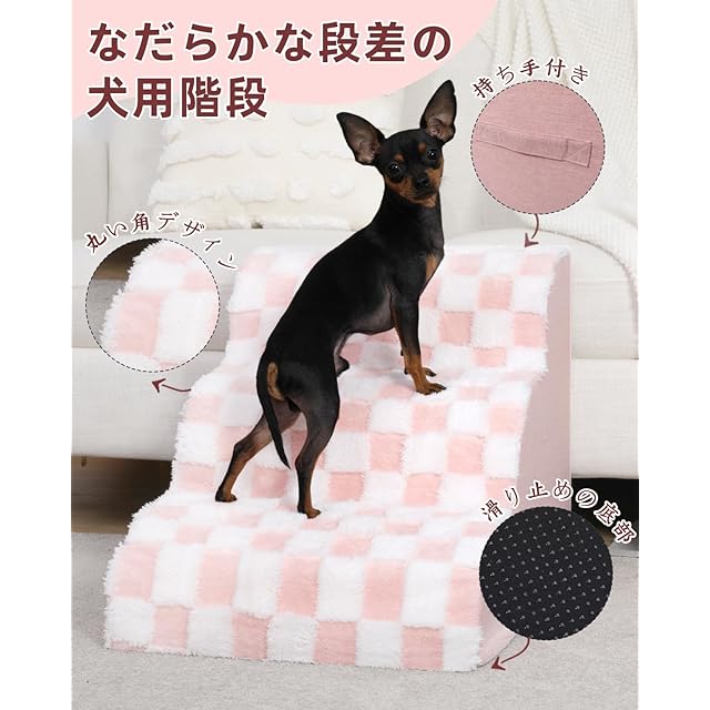 KSIIA 犬 階段 ステップ 高密度 ペット 階段 犬 ステップ 洗える 犬階段 滑り止め 犬用階段 取り外せるカバー ドッグステップ 安定性 3段 小型犬 高齢犬 57×40×40cm ピンク