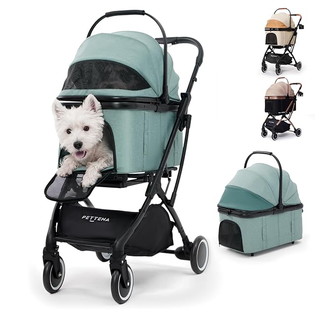 【2025夏新色】PETTENA 分離型 ペットカート 小型犬 耐荷重20KG 自立型 広い空間 キャリーコットを置いたままワンタッチ全車折畳 軽量 使用簡単 犬 バギー 猫 犬用カート PETTENA KNIGHT(ミントブルー)