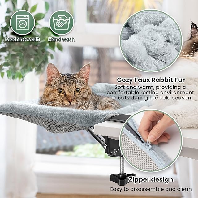 【丈夫でマルチデスクトップ対応】デスクキャットベッドの最大重量は15キログラムあり、予期せず猫が飛び込んでも安定性を維持します。また様々な大きさの猫に適合します。