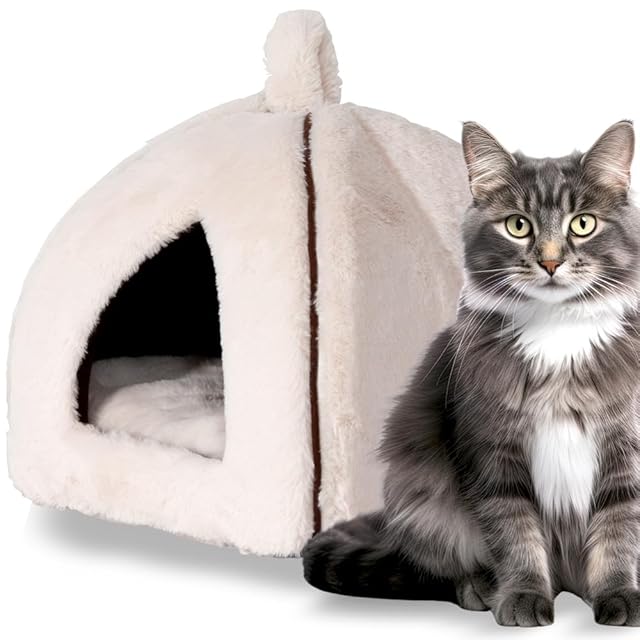 プチリュバン 犬 猫 ベッド ペットベッド アイボリー Sサイズ 超小型犬 小型犬 小動物 うさぎ ペットハウス ドームハウス ドーム型 冬 暖かい 折りたたみ 室内用 防寒 あったか 洗える ふわふわ