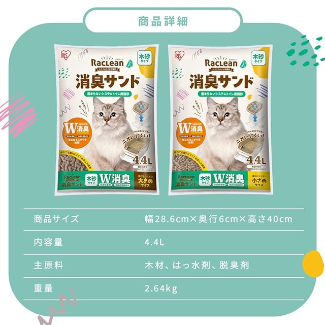 商品名:アイリスオーヤマ ラクリーン 猫砂 システムトイレ 消臭サンド 木砂 粒大きめ4.4L×4袋 ケース品 ネコ砂