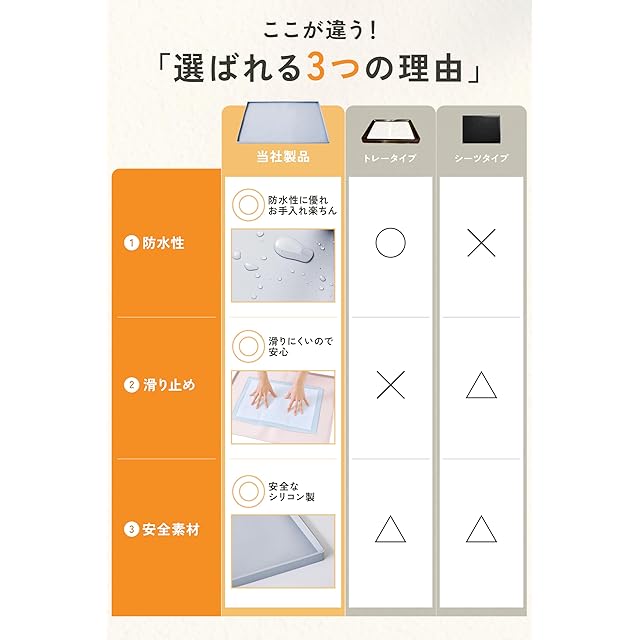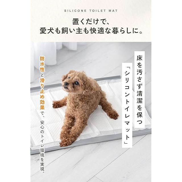 ≪獣医師監修≫いぬのくらしのシリコントイレマットは防水性が高く清掃も簡単で、食品グレードのシリコンを使用しているため安心してご使用していただけます。 また、様々なシーンで活用できわんちゃんの生活を快適にしてくれます。 シリコントイレマットを敷くことで滑りにくくなり、関節への負担も軽減されるので足腰の弱いわんちゃんやシニア犬にもお勧めです。