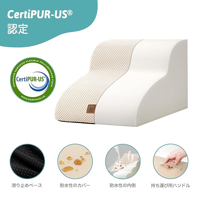 商品名:COZY KISS 犬 階段 高密度スポンジ 防水加工 ドッグステップ 滑り止め底面 カバー取り外し洗える コンパクト収納 ペット階段 (ベージュ、 40×50×30cm、 2段)