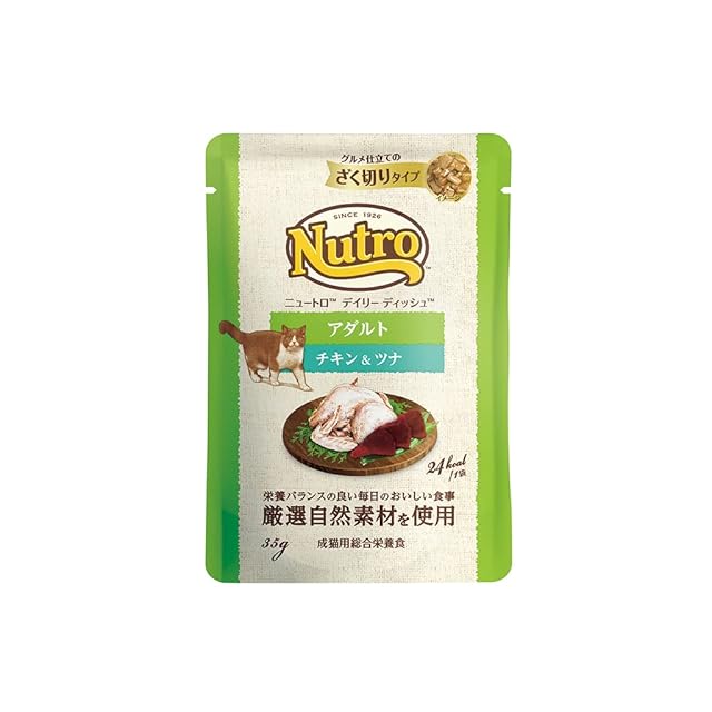 Nutro デイリーディッシュ ウェット グルメ仕立てのざく切り 成猫用 35g×12袋 チキン&ツナ パウチ 少量使い切り 総合栄養食 アダルト 1歳以上 キャットフード 猫 まとめ買い 穀物フリー グレインフリー 厳選自然素材 香料・着色料 無添加 下部尿路の健康維持 ニュートロ
