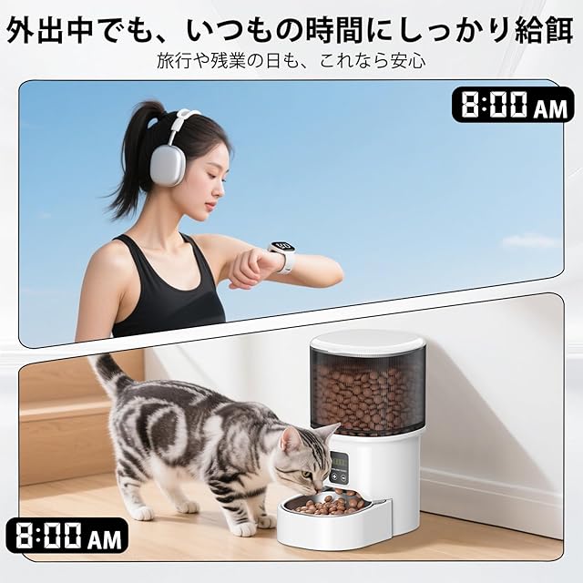商品名:CozyMoew 自動給餌器 猫 WiFi スマホ遠隔操作 4L ペット 自動餌やり機 餌入れ 定時定量 1日6食 ステンレス製ボウル 2WAY給電 水洗い可能 内蔵式防湿ユニット 手動給餌 お手入れ簡単