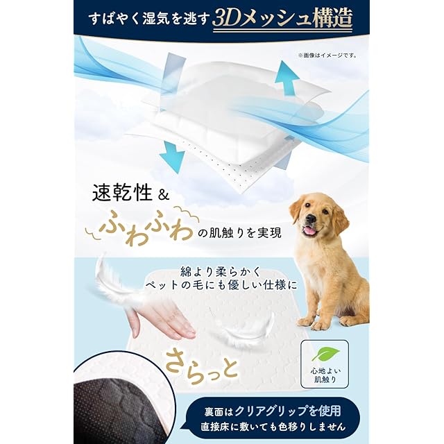 商品名:【瞬間吸水モデル × 動物看護師と開発】洗えるペットシーツ 2枚入り 犬猫兼用 速乾3Dメッシュ 再利用可能犬用トレーニングパッド [厚労省が安全性を認めた銀イオンによる抗菌・防カビ加工] (M (60cm×45cm) 2枚)
