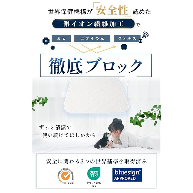 ✅【世界保健機構が認めた安全性の“銀イオン”加工で抗菌・防カビ効果】PETLABの洗えるペットシーツは表面に“銀イオン加工”が施されており、抗菌・防カビ仕様で清潔にご使用いただけます。また、銀イオンはWHO(世界保健機構)が人体やペットに悪影響が無いと定義されており、赤ちゃんや子猫・子犬のいるご家庭でも安心です。