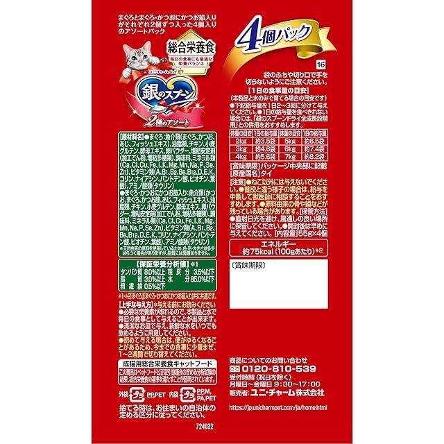 商品名:【まとめ買い】銀のスプーン キャットフード ウェット パウチ 総合栄養食 2種のアソート まぐろ まぐろ・かつお・かつお節入り 220g(55g×4袋)×6 ユニチャーム