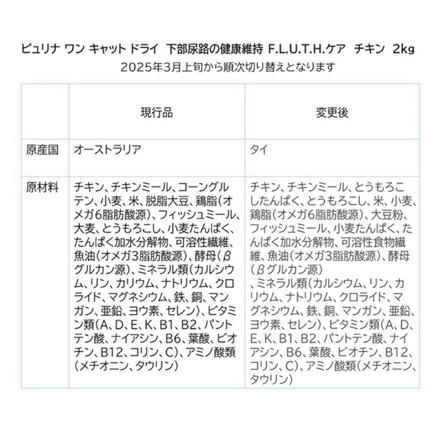商品名:ピュリナ ワン ピュリナワンキャット 下部尿路の健康維持F.L.U.T.H.ケア 1歳以上 チキン 2kg(500gx4袋入)