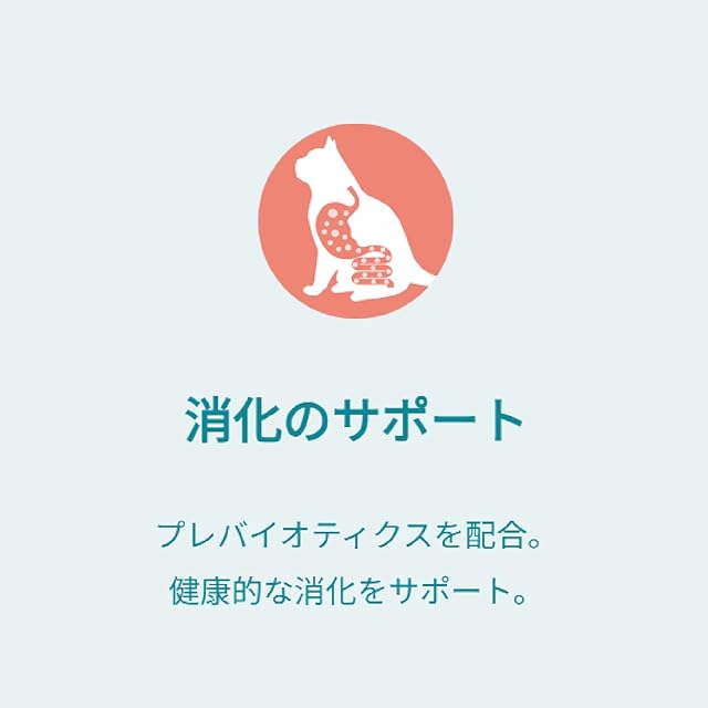 原材料:かつお、まぐろ、たんぱく加水分解物、フィッシュエキス、酵母細胞壁(βグルカン源)、クランベリーエキス、オリゴ糖(プレバイオティクス源)、フィッシュオイル(オメガ3脂肪酸源)、増粘多糖類、調味料、ビタミンE、タウリン