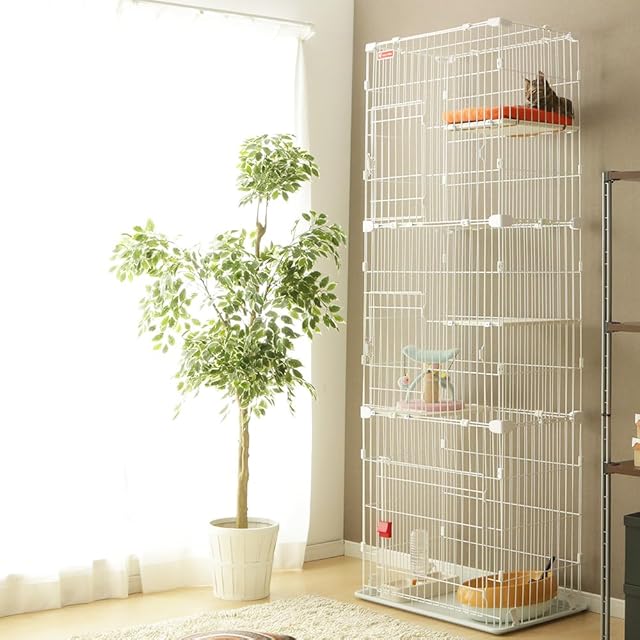 <スリムキャットケージ3段 PSCC-753 ホワイト>●商品サイズ(cm):幅約74.5×奥行約47×高さ約200