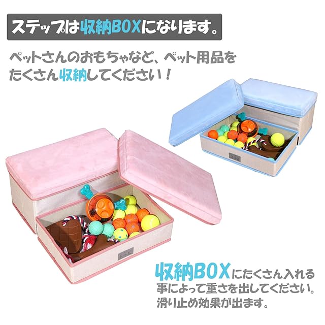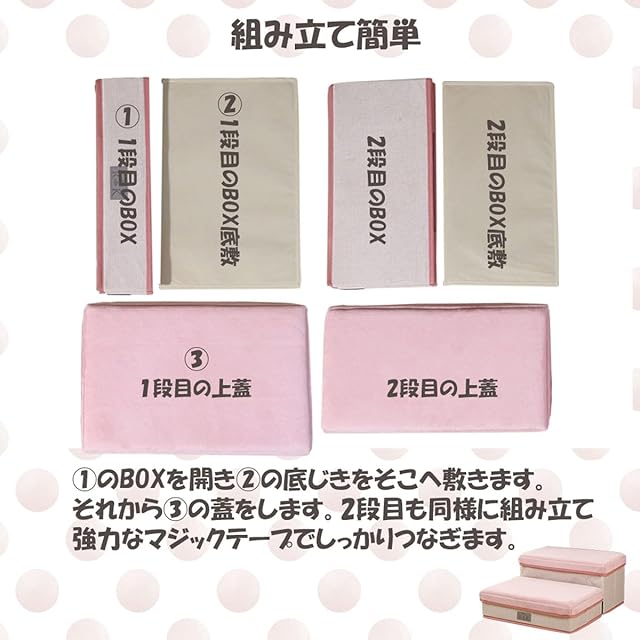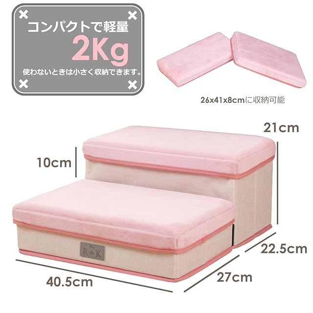 商品名:RK ペットステップ ドッグステップ ペット ステップ 階段 犬の階段 2段 タイプ 収納ボックス 組立 折りたたみ コンパクト 軽量 踏み台 スロープ 国内検品済 ベビーピンク