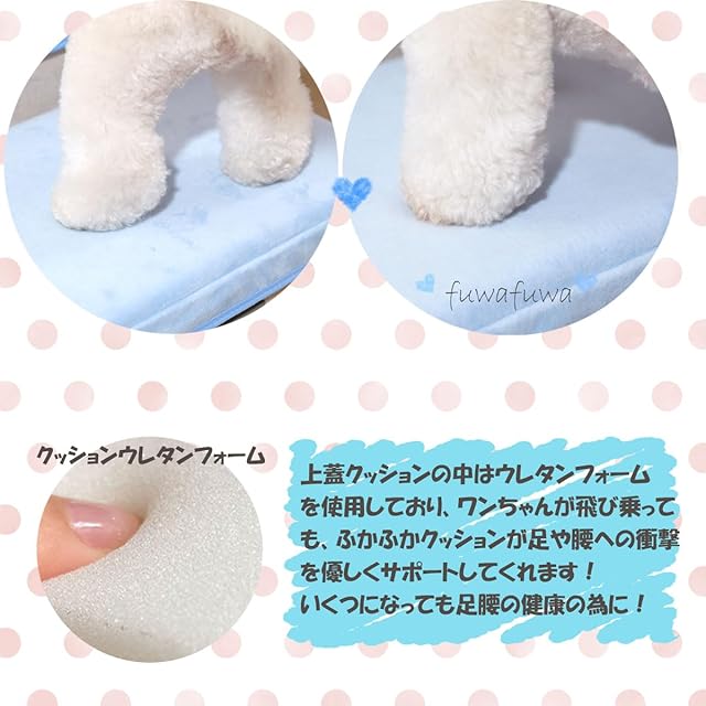 ●収納型のドックステップで、ワンちゃんの服や小物、飼い主様の荷物など、スペースを活用して収納いただけます。 ●チップウレタンと違い、1枚物のウレタンシートを使用している為、適度な硬さとクッション性で足腰の負担を軽減します。 ●1段目が奥行27cmと幅広サイズになっており、階段の勾配が緩やか。 ●コンパクトサイズで場所をとりません。 ●使わないときは折り畳んでおく事も可能です。 ●軽量型で組み立ても簡単!