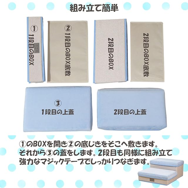 商品名:RK ペットステップ ドッグステップ ペット ステップ 階段 犬の階段 2段 タイプ 収納ボックス 組立 折りたたみ コンパクト 軽量 踏み台 スロープ 国内検品済 ベビーブルー