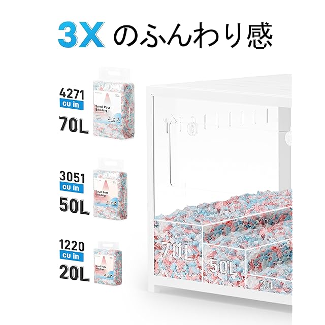 商品名:BUCATSTATE ハムスター 床材 紙 無塵【圧縮パッケージ 大容量】ハムスター マット 広葉樹マット 小動物 床材 雲の上で眠るような柔らかさ 超ふわふわ クラウドシリーズ 天然素材 紙 消臭 快適 うさぎ マット ハムスター モルモット ウサギ ハリネズミ フクロモモンガ 小動物用 床材 50L [ピンク+ブルー+ホワイト]