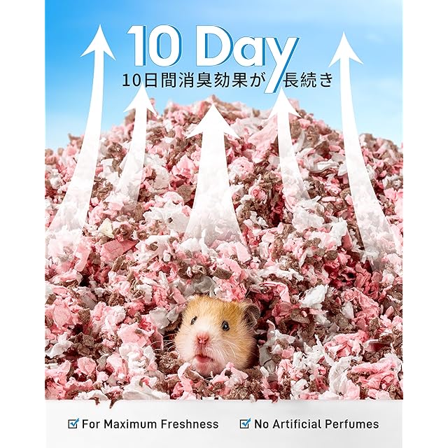 【優れた通気性と消臭性】吸水効果は木のチップの3倍!原木由来の消臭成分が含まれているため、安心して使用できる上、菌の増殖も防ぎます。10日以上にわたって消臭効果を持ち、優れた吸湿性があるため、冬は暖かい巣材として、夏は快適に使用できます。