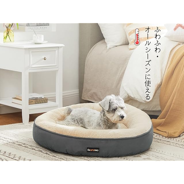 FEANDREA 犬 ソファ ペットクッション 猫 犬 ベッド 60×60cm ふわふわ 滑り止め 洗える ペットソファ 可愛いドーナツ型 中小型犬用 マット ペット用品 PGW060G02
