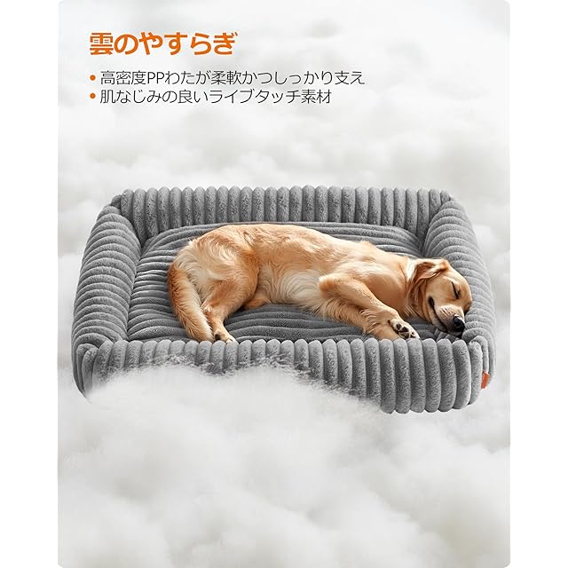 商品名:FEANDREA ペット用オーソペディックベッド 中型犬用 洗える ふわふわマット ソフトクッション サイズ120x85x23cm ダブグレー PGW314GD01