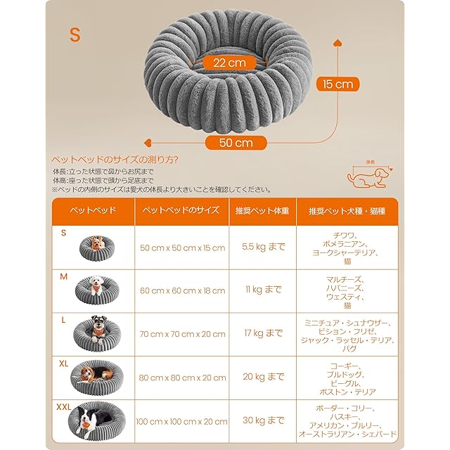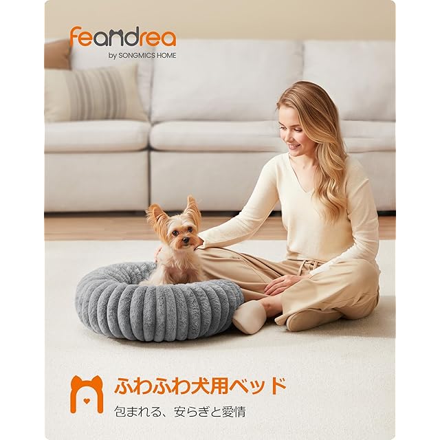 商品名:FEANDREA ペットベッド 直径50cm 小型犬 猫用 洗える ソフトクッション 滑り止め加工 ダブグレー PGW301GD01