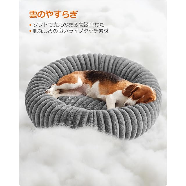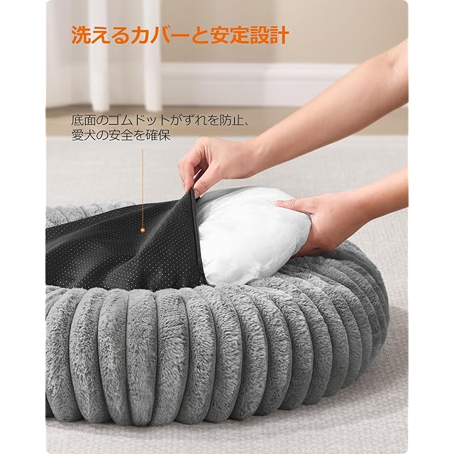 Feandrea ペットベッド 直径80cm 小型犬 猫用 洗える ソフトクッション 滑り止め加工 ダブグレー PGW301GD01
