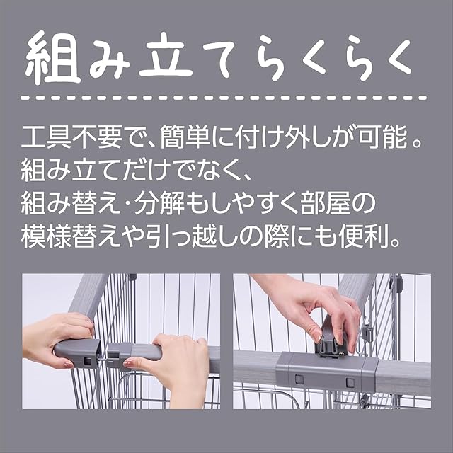 スペースを区切れるからトイレの場所を覚えやすい!組み替えることでトイレスペースと住居スペースの左右入れ替えが可能!工具不要で組み立てらくらく!