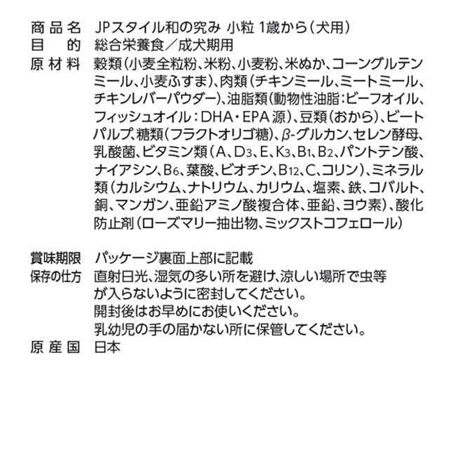 商品名:ジェーピースタイル 和の究み ドッグフード 小粒 1歳から【国産/アルミ小分け】 700g(100g×7)