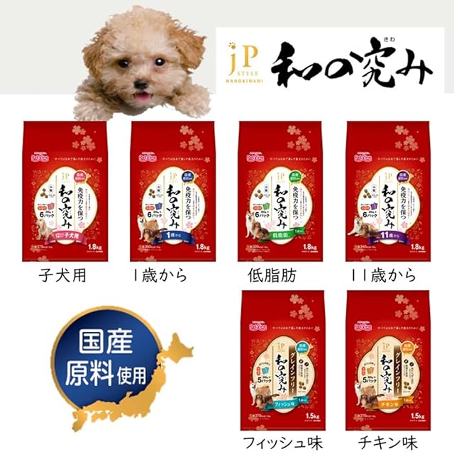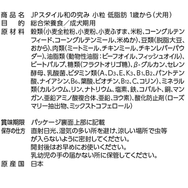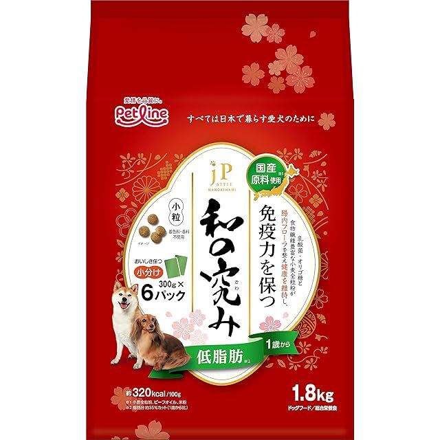 商品名:ジェーピースタイル 和の究み ドッグフード 小粒 低脂肪 1歳から【国産/アルミ小分け】 1.8kg(300g×6)