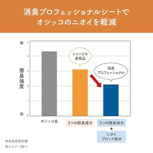 【消臭プロフェッショナルはニャンともシート史上最高級の脱臭力! 】ニオイブロック成分配合で、オシッコのニオイに高い消臭効果を発揮。