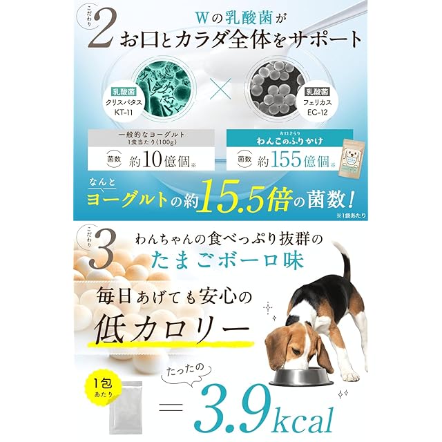 ✅【低カロリーで美味しい味】毎日食べてほしいものだから味にもとことんこだわり、わんちゃんの食べっぷり抜群のたまごボーロ味を採用。また1包あたり、3.9キロカロリーで毎日あげても安心の低カロリーです。