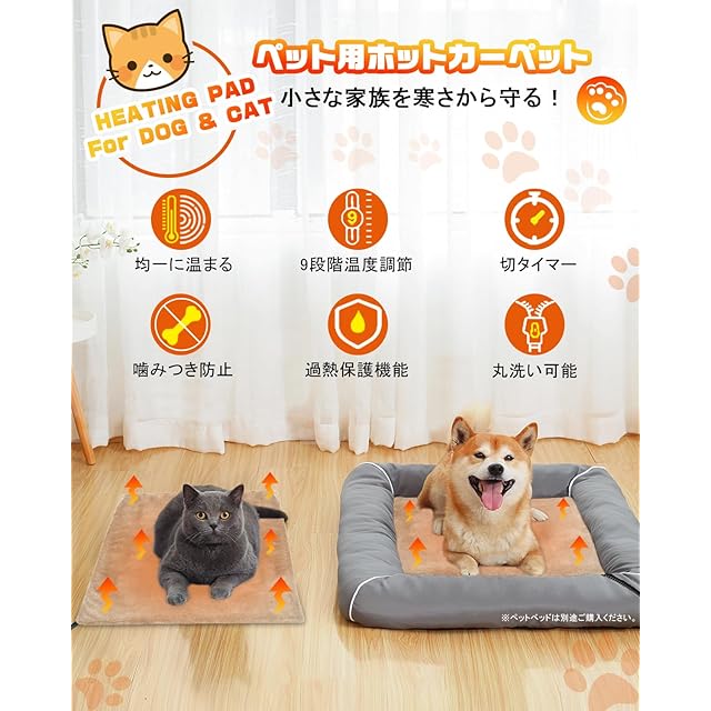 商品名:【寒い冬もあったか】 ペット用ホットカーペット 9段階温度調節 ペット用ヒーター 切タイマー 電気ホットマット ペット 犬 猫用 噛みつき防止 防水 過熱保護 丸洗い ふわふわカバー 寒さ対策 45*45cm カバー2枚付き ベージュ