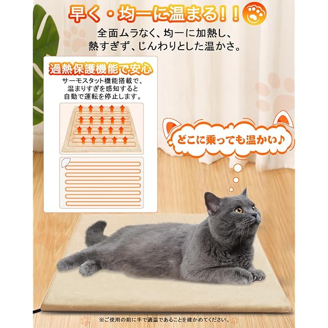 【省エネ&商品詳細】消費電力はわずか25W、1時間使用しても0.6円の電気代と家計に嬉しい節約設計です。サイズ:45*45cm ご使用の対象:チワワなど小型犬、猫、ウサギなど小動物。※ホットマット本体表面の温度は裏面より高めで、使用時は表面を上に。