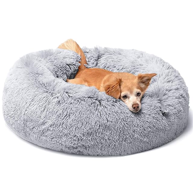 犬 ベッド 猫 ベッド クッション グッズ - ラウンド型 もふもふ OYANTEN 丸型 ドーナツふわふわ もこもこ ぐっすり眠る 洗える 通年 コーギー/柴犬/中型犬用品(75cm, ライトグレー)