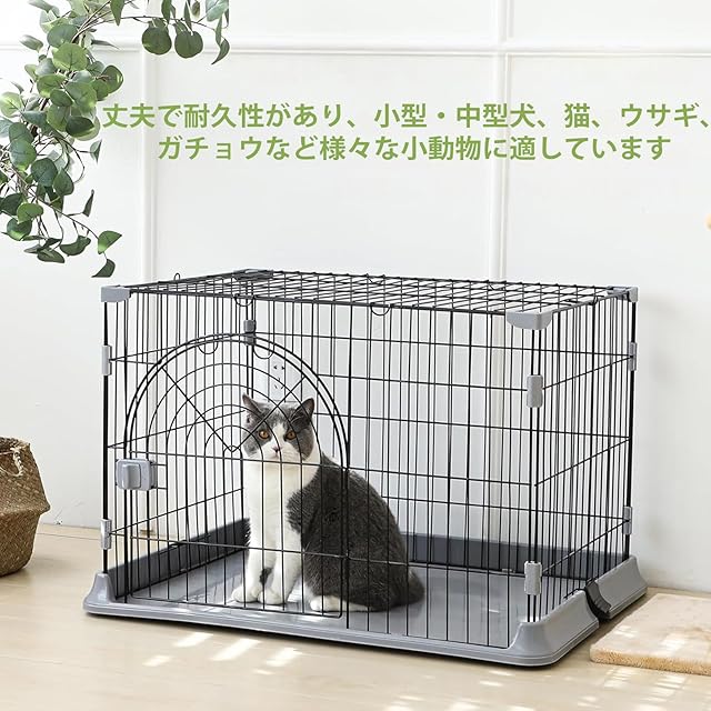 【超広いスペース】スペースが広く、小型・中型犬に適し、ワンちゃんの成長過程の各段階で使用できます。ワンちゃんに圧迫感を与えにくく、安心・快適な空間を作ります。留守番中や仕事する時など、ワンちゃんを犬ケージの中に入れておくと安心で、ワンちゃんの安全が守られます。(犬だけでなく、他のペットの専用スペースとしても使えます。)