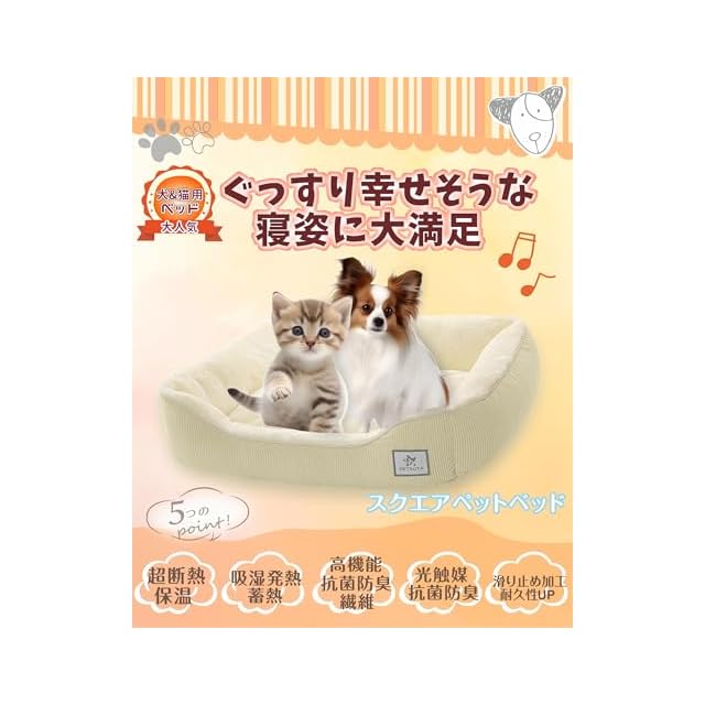 商品名:PETSUTA 猫 犬 ベッド 冬 極上暖感 【宇宙服エアロゲル+高機能中わた】 ペットベッド 冬 犬用ベッド 猫用ベッド 【天然吸湿発熱+アルミシート】 多層構造 ふわふわ 暖かい 猫 犬 クッション 光触媒加工 洗える ペットクッション ダブル抗菌防臭 ダブル静電気防止 滑り止め付き(アイボリー・ 52x70x20cm)