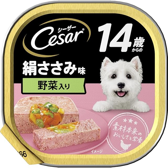 商品名:シーザー トレイ 14歳からの シニア犬用 100g×24個 絹ささみ 野菜入り 水分補給 ふわふわローフタイプ 総合栄養食 高齢期 ウェットフード ドッグフード 缶詰 犬 Cesar まとめ買い