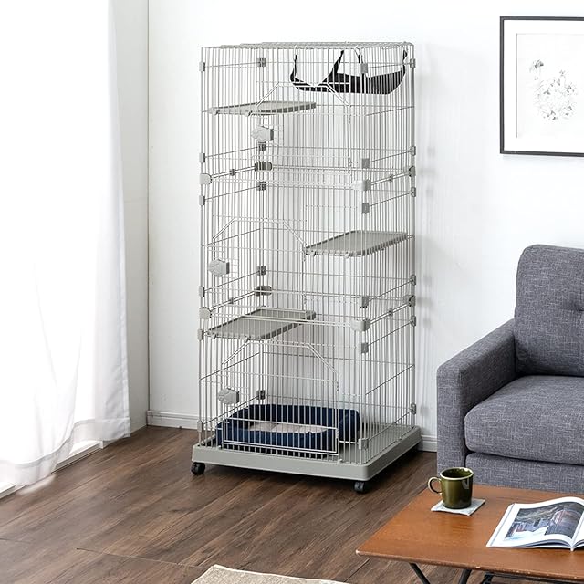 タンスのゲン 猫ケージ 3段 ハンモック キャスター付き コンパクト キャットケージ 天井扉 幅69×奥行48×高さ153 52800018(85760)
