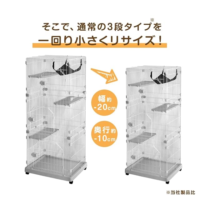【おすすめポイント!】<br><br>・狭い部屋にも置きやすいコンパクトタイプ<br> ・子猫ちゃんでも柵の間から逃げ出せない幅狭フレーム<br> ・中でいっぱい運動出来る3ステップ<br> ・ゆったりくつろげるハンモック付き<br> ・出し入れしやすい幅広扉&天井フルオープン扉付き<br> ・側面扉にはワンタッチ簡単ロック付き<br> ・移動らくらくキャスター付