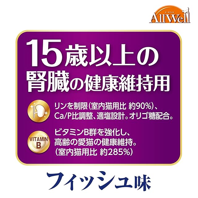 商品名:[吐き戻し軽減] All Well(オールウェル) キャットフード ドライ [15歳以上の腎臓の健康維持用] フィッシュ 9.6kg (2.4kg×4個)【国産/ケース品】