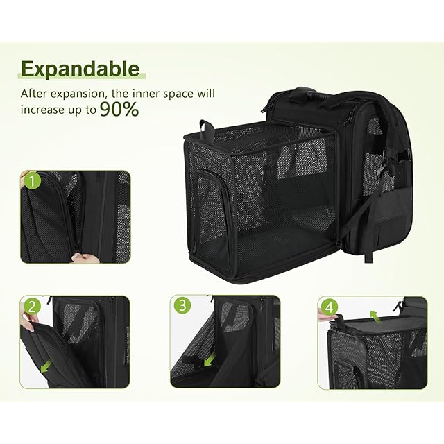 Pecute ペット猫 キャリーバッグ 猫用 犬用 リュック 猫 キャリー リュックメッシュ窓 通気性 拡張可能 2WAY ペット用バックパック 折り畳み お出かけ ドライブ 旅行 通院 防災 避難用 ペットキャリー ブラック XL