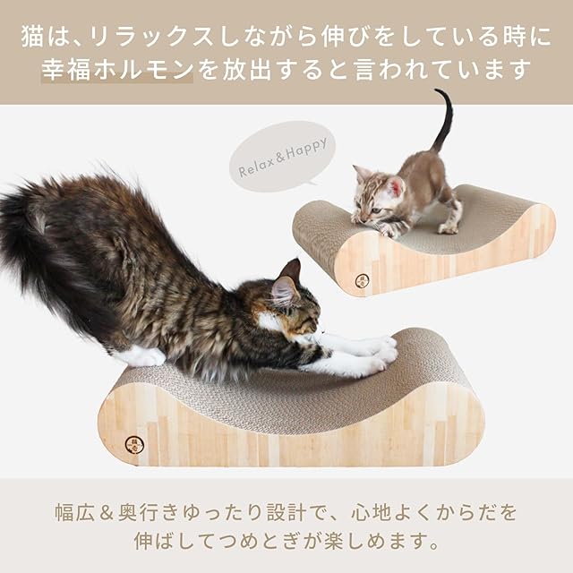 【高密度ダンボールで長持ち】ダンボールは薄いダンボールを貼り合わせています。 薄いタイプを使用することで密度が高くなり、猫のとぎ甲斐アップだけでなく、耐久性も持たせています。 ダンボールの目が潰れたり、柔らかくなってきましたら、新しいつめとぎに交換してあげてください。