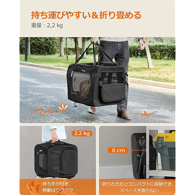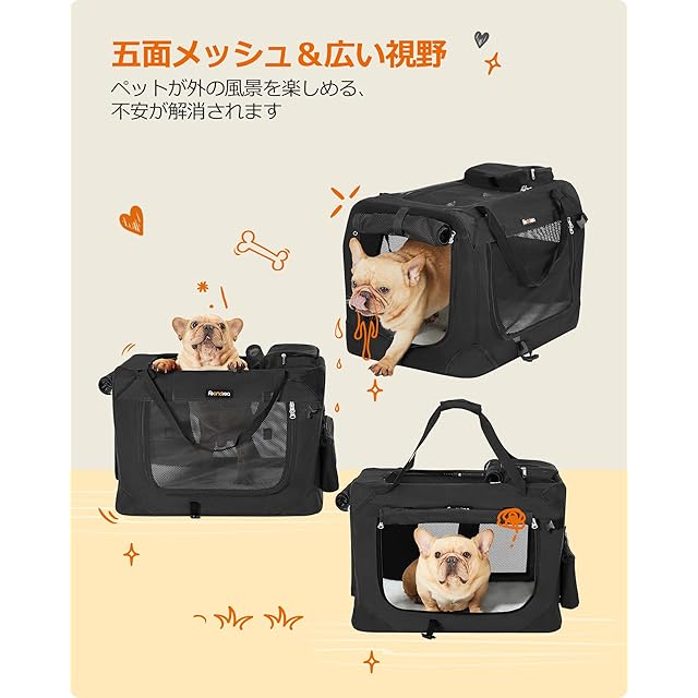 FEANDREA ペットキャリー 犬 猫 キャリーバッグ キャリーケース 折りたたみ 50×35×35cm ブラック PDC50H