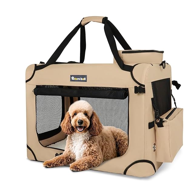 Totoro ball ソフトクレート 大型犬 大空間な犬用クレート 折りたたみペットケージ 5面メッシュ 折りたたみ簡単 省スペース 頑丈耐久 洗濯可能 ロック付き クレート中大型犬 20kgまで『室内休憩、急な来客時、アウトドア、病院、キャンプに大活躍!』 (ベージュ, XL(81L x 58W x 58H cm))