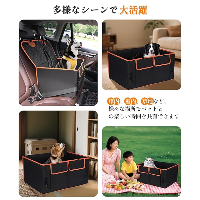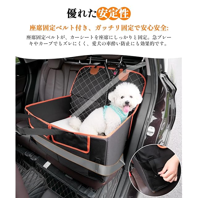 【高耐久600Dオックスフォード布&PU防水加工】 傷つきにくく、お手入れ簡単、600Dオックスフォード布にPU防水加工を施し、汚れや水に強いので、いつでも清潔に保てます。当社の犬 ドライブシートがあれば、アクティブな愛犬にも心配しません。