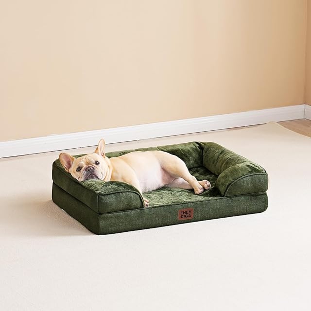 商品名:EHEYCIGA 犬 ベッド 冬 ペットベッド 防水 猫 ベッド 洗える 犬用 クッション 高反発 取り外せるカバー 滑り止め オールシーズン 中型犬 大型犬(91x68x16.5cm,グリーン)